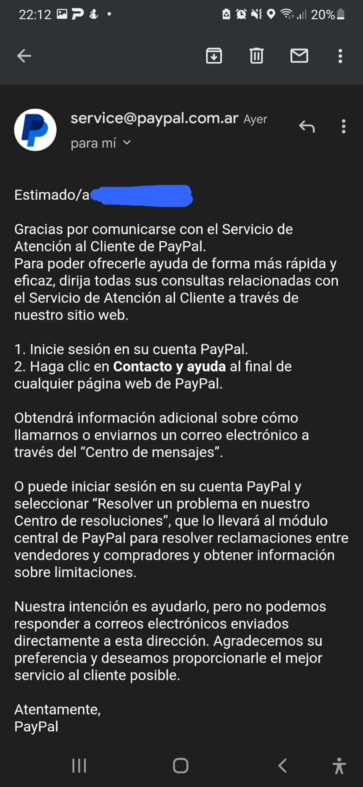 Ahora bien, la pregunta es ¿cuál es la reacción de PayPal ante esta situación? La respuesta es sumamente clara: ninguna. Esto se desprende de las declaraciones del joven estafado, quien reveló que al intentar formular su queja ante la entidad, recibió una respuesta que rechazaba su reclamo, alegando que la transferencia había sido catalogada como una donación, lo cual, según la política de la empresa, no admite reclamaciones por desavenencias.