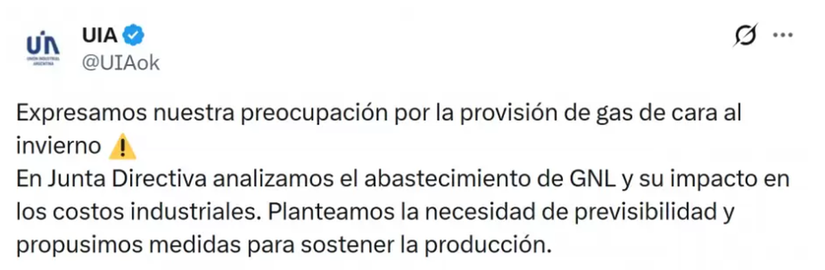 Si bien la actividad industrial habría tenido un leve rebote en marzo tras un febrero débil, y un primer trimestre que, de todas formas, terminó en baja, la industria se puso en alerta ahora con la llegada de las bajas temperaturas y los riesgos en la provisión de gas. Por eso, desde la Unión Industrial Argentina (UIA) salieron a reclamar " medidas transitorias".