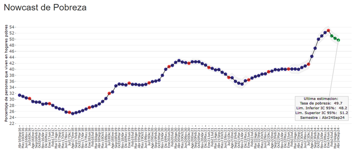 Finalmente, sostuvo que "la merma en las remarcaciones trajo un poco de alivio en la medición de la pobreza y citó un trabajo de Mario Rozada que establece un leve descenso de la misma en el mes de septiembre de 2024".