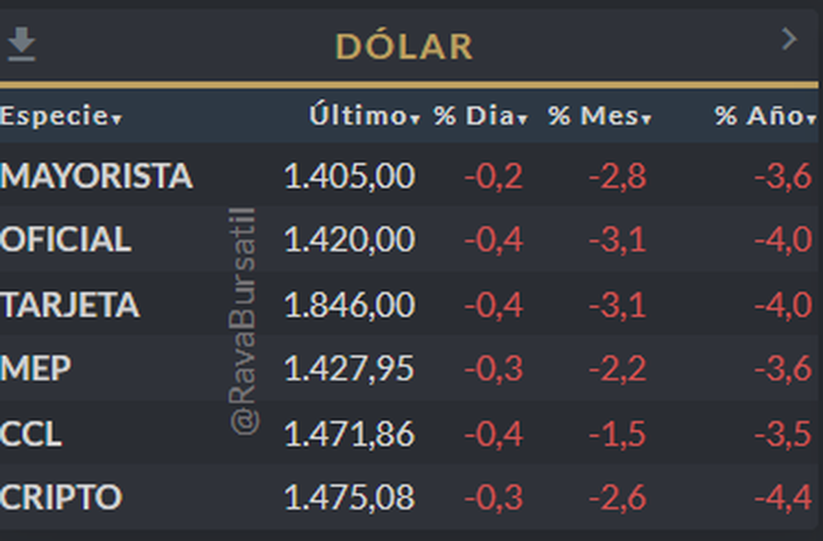 El dólar mayorista se ubica en $1.405, el MEP en $1.427 y el CCL en $1.471, con variaciones intradiarias acotadas. La relativa estabilidad cambiaria se mantiene, aunque el flujo hacia cobertura podría intensificarse si escala la tensión legislativa.