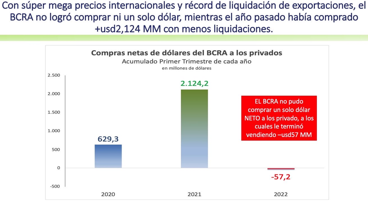 Mientras tanto el BCRA hoy corto con su racha de compras y -de acuerdo con el operador de cambios en PR, Gustavo Quintana-, la entidad monetaria finalizó con ventas por US$35 millones en el Mercado Único y Libre de Cambios -MULC-. Al mismo tiempo, agrega que: