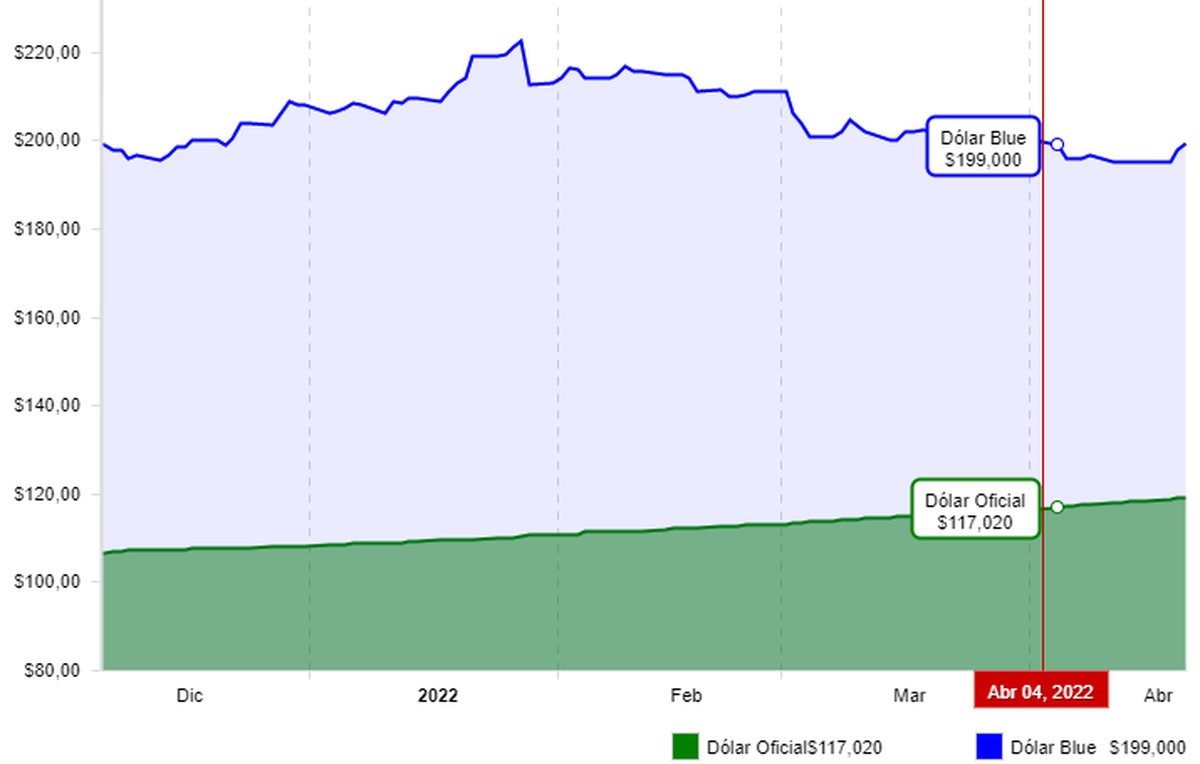 El dólar blue sigue marcando su sendero alcista y hoy -miércoles 20 de abril- la divisa norteamericana informal cotiza a un precio de $196,5 para su venta y de $198,5 para su compra. De esta forma, el dólar blue vuelve a recuperar el valor que tenía a principios de este mes pero sigue alejado de su máximo histórico registrado -$223-.