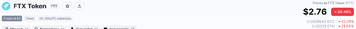 Con esto, la criptomoneda de FTX, la denominada FTX Token, se desploma más -cerca de un 27%- y comienza a negociarse en el rango de los US$ 3