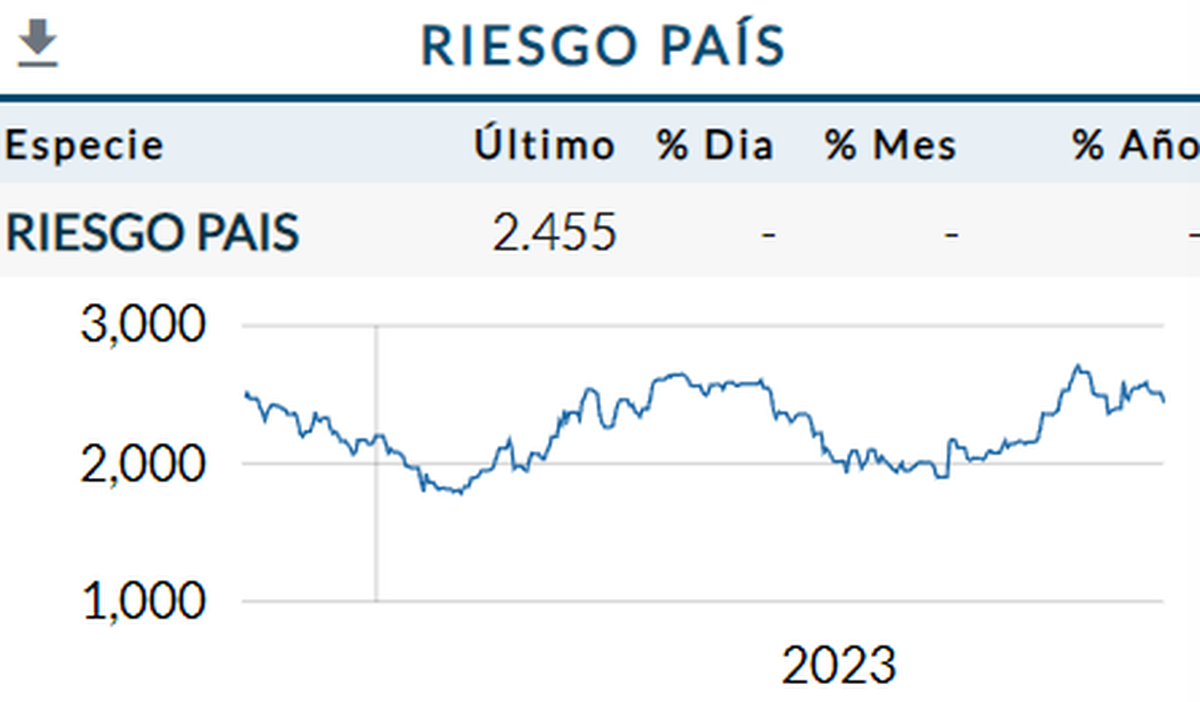 En este sentido, el riesgo país cede un poco, se aleja de los 2.500 puntos y termina en los 2.455 puntos básicos.