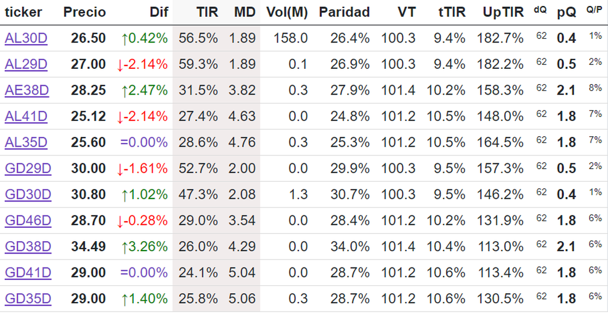 Por el lado de la renta fija, veremos disminuciones totales en los bonos a tasa fija (BADLAR) y en prácticamente todos los bonos CER