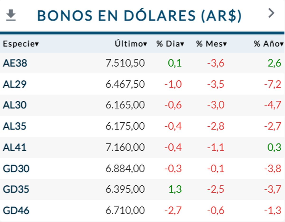 A su vez, la gran mayoría de los bonos en dólares se tiñen de rojo