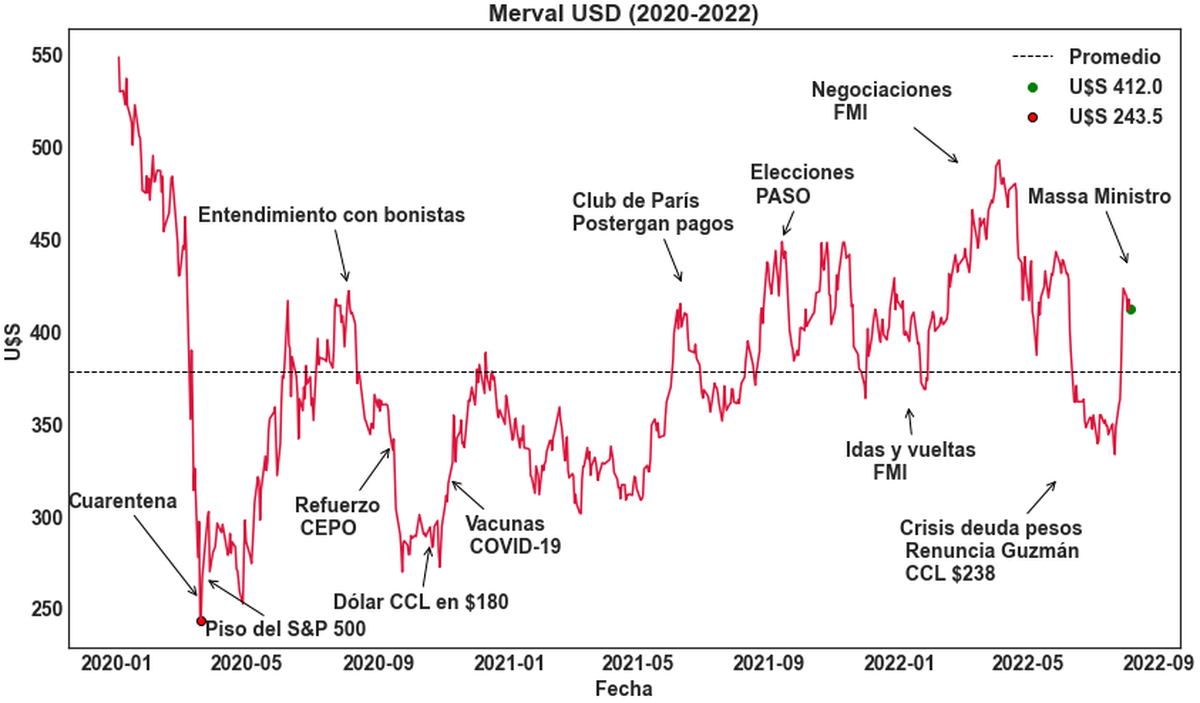 Y eso es cierto, hubo mucho volatilidad en el principal índice argentino. Esto mismo resalta el economista Camilo Cisera, quien asegura que la salida de Martín Guzmán y el mes de gestión de Silvina Batakis pegaron fuerte en expectativas. Mientras que en sentido opuesto, "Massa superministro" llevó al Merval a rebotar casi 50%.