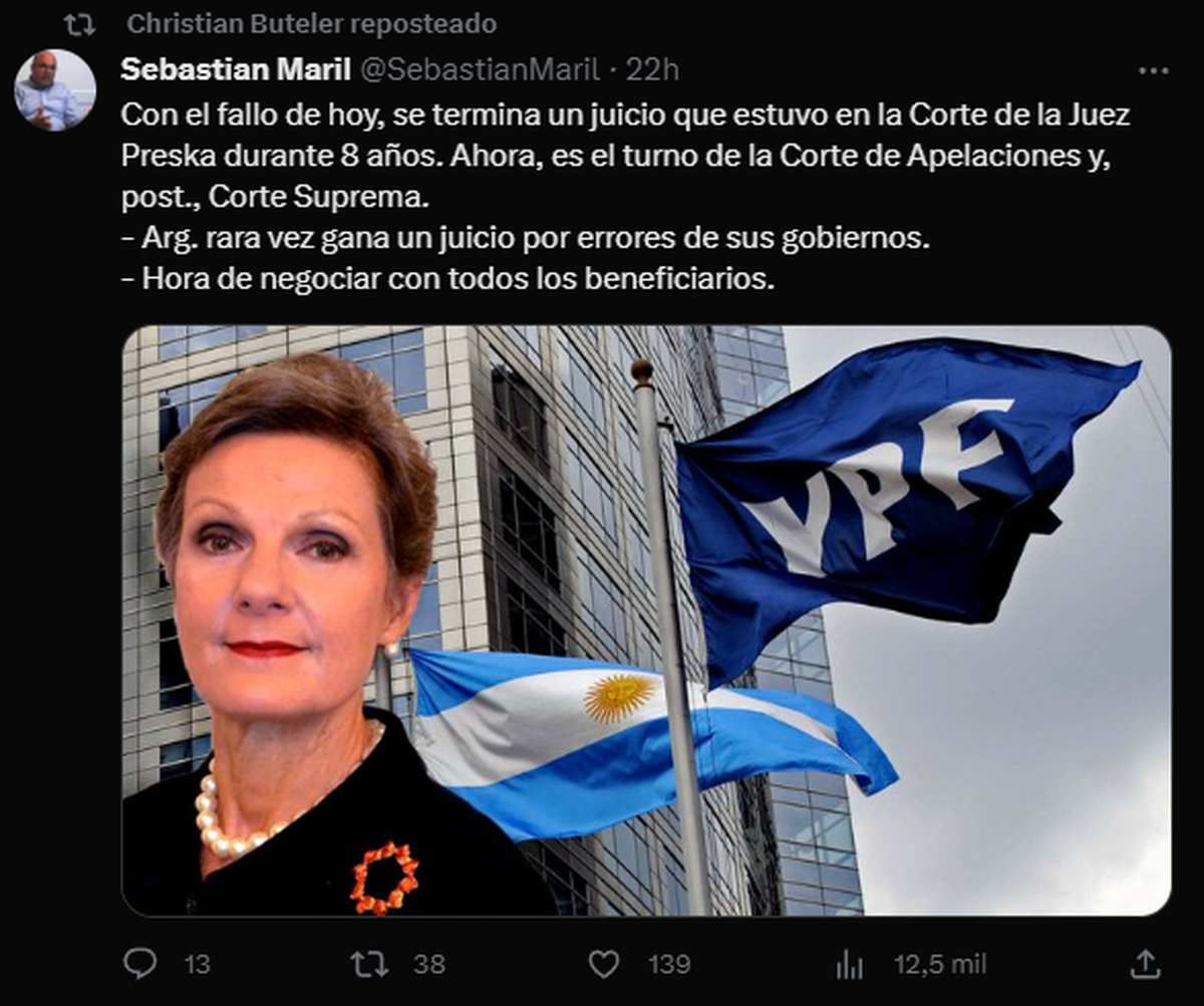 Preska ya había fallado en contra de la Argentina al determinar que la expropiación del 51% de las acciones de la petrolera se había realizado de forma irregular, aunque había exceptuado de responsabilidad a la compañía.