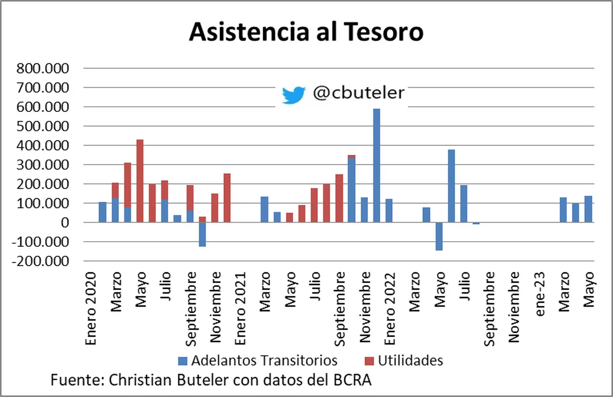 De acuerdo a un repaso de números que hizo el analista financiero Christian Buteler, en lo que va del año, hasta el 5 de mayo, el BCRA emitió pesos por: