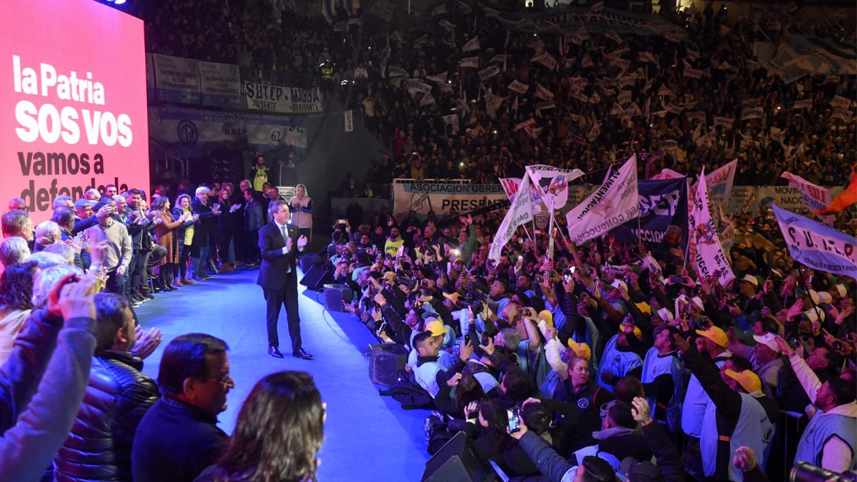 "Los invito a defender nuestra Patria. Escucho que dicen que el nuestro es un país fracasado, que somos una sociedad de mierda, un país sin destino, entre otras cosas, cuestionando al modelo sindical argentino. Pero sabemos que el movimiento obrero, la columna vertebral del peronismo, tenemos que ir a votar pensando en nuestra Patria” aseguró el precandidato.