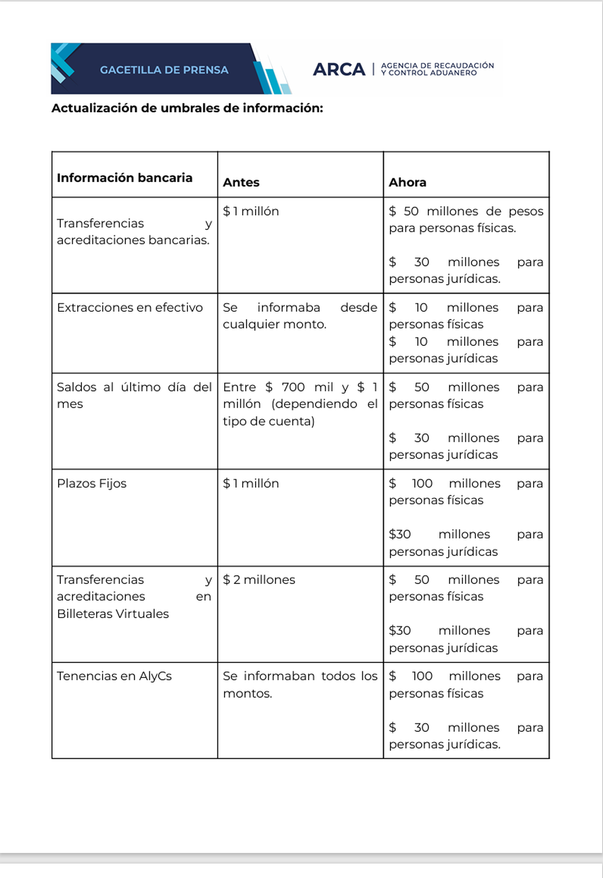 Por ejemplo, si para una operación comercial de un consumidor final el monto a partir del cual debía ser informado era de $250 mil en efectivo y $400 mil por otros medios de pago, con la actualización esa cifra para ambos aumenta a $10 millones.