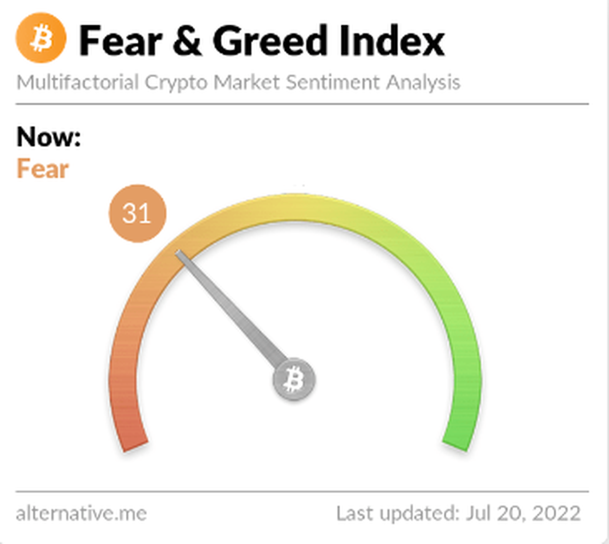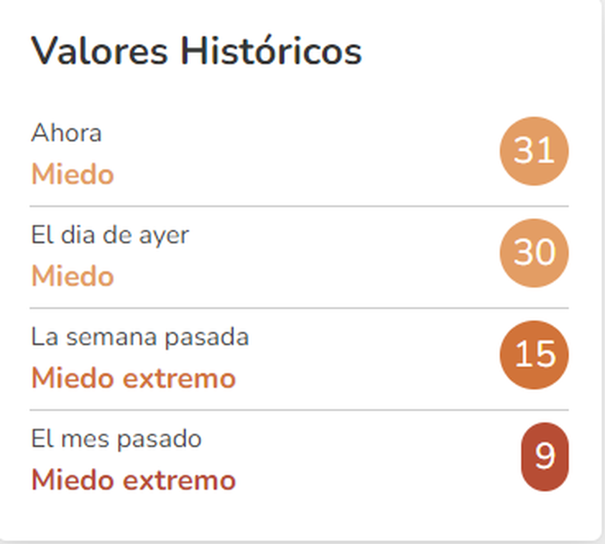 Incluso el Índice miedo y codicia de bitcoin sigue mejorando y se ubica en el rango de miedo logrando salir de la categoría miedo extremo presente en los últimas semanas: