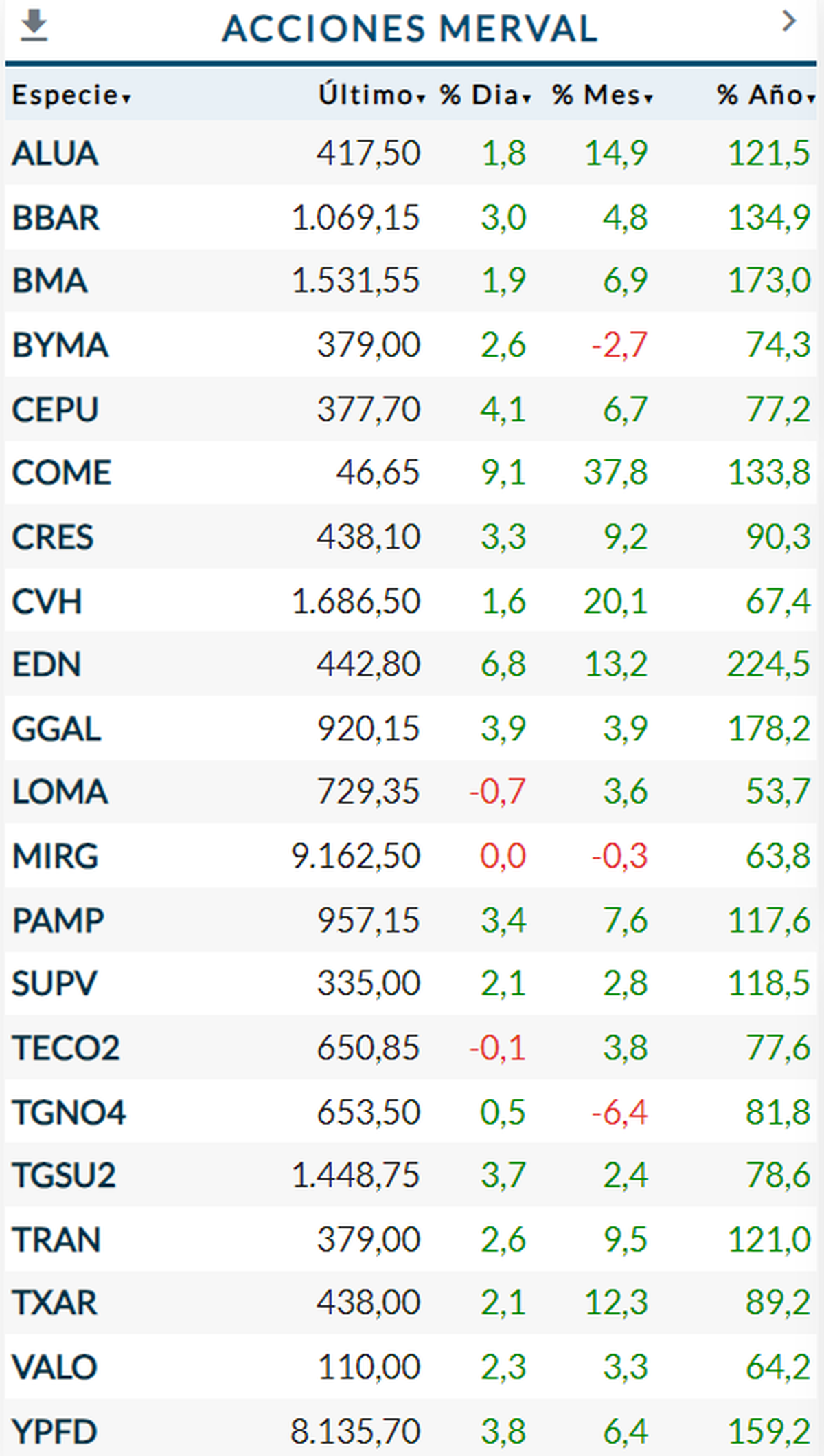 ACCIONES EN VERDE