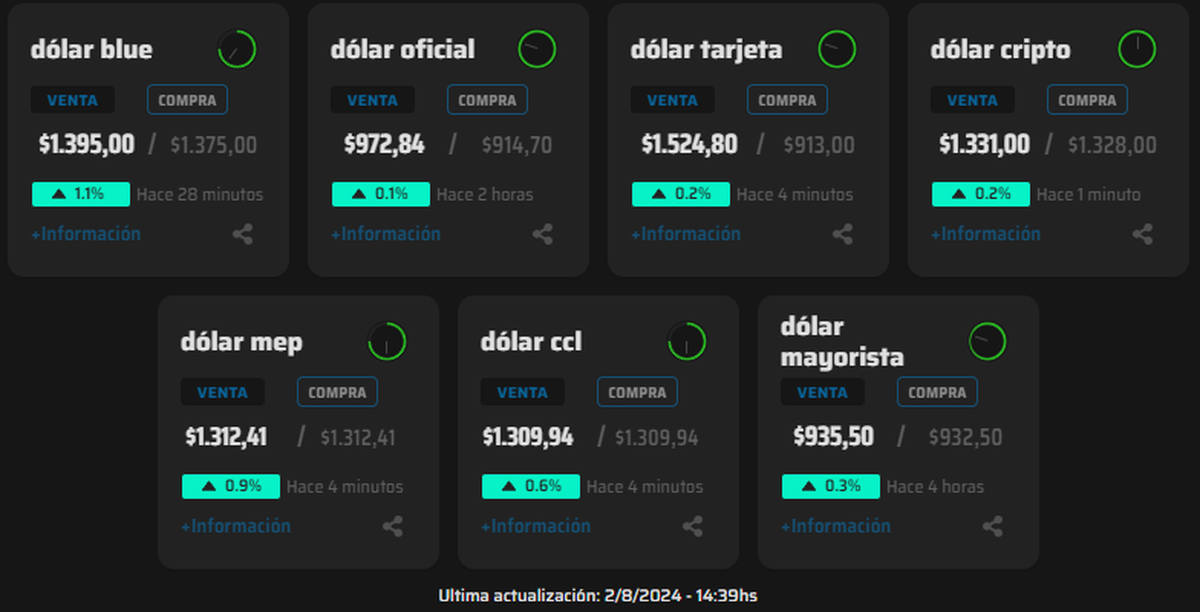 - Dólar blue (City Porteña): $1.395