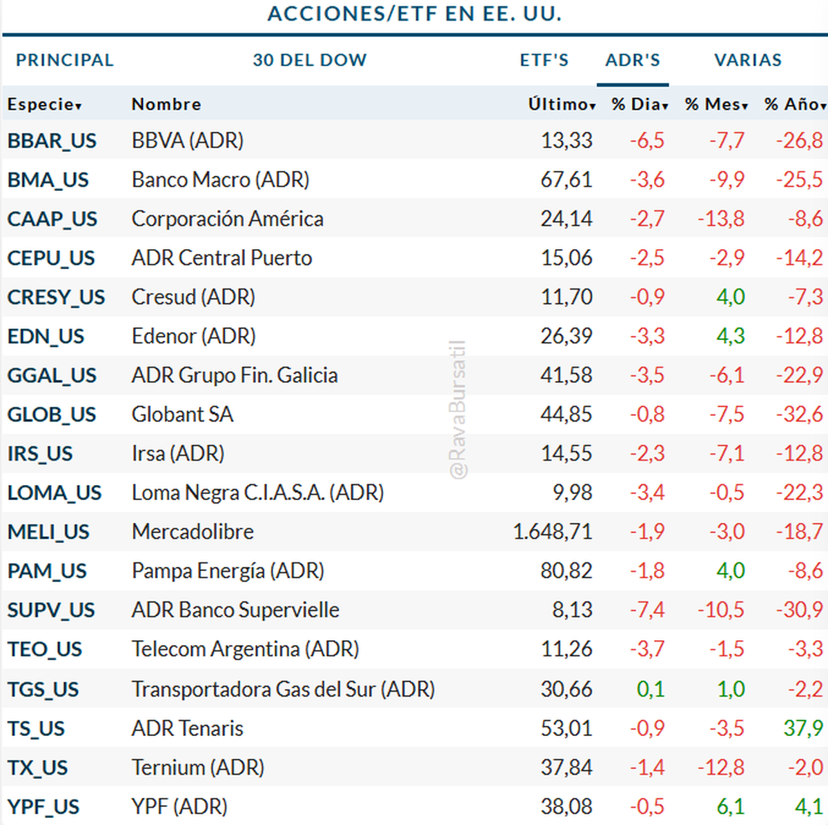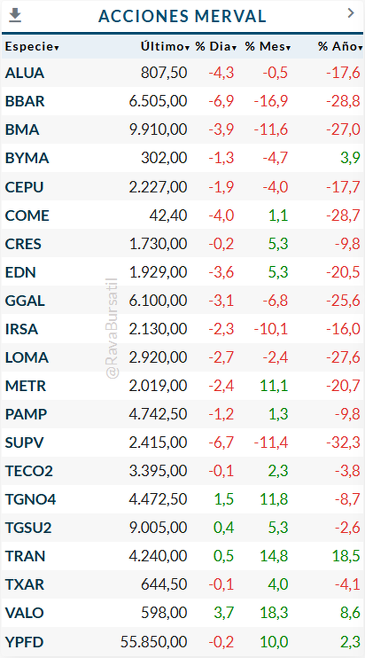 Entre los papeles con mejor desempeño mensual también sobresalen TRAN, con una suba de 14,8%, METR con 11,1%, YPFD con 10% y VALO con 18,3%. Esa dispersión deja una señal clara. No hay una salida indiscriminada de acciones argentinas, sino una rotación muy selectiva en la que el mercado castiga algunos sectores y mantiene interés en otros vinculados con energía, transporte o historias corporativas específicas.