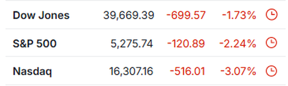 El Nasdaq cayó 3,07%, el S&P 500 bajó 2,24% y el Dow perdió 1,73%. El golpe más fuerte lo sufrió el sector tecnológico, que venía liderando las subas en lo que va del año.