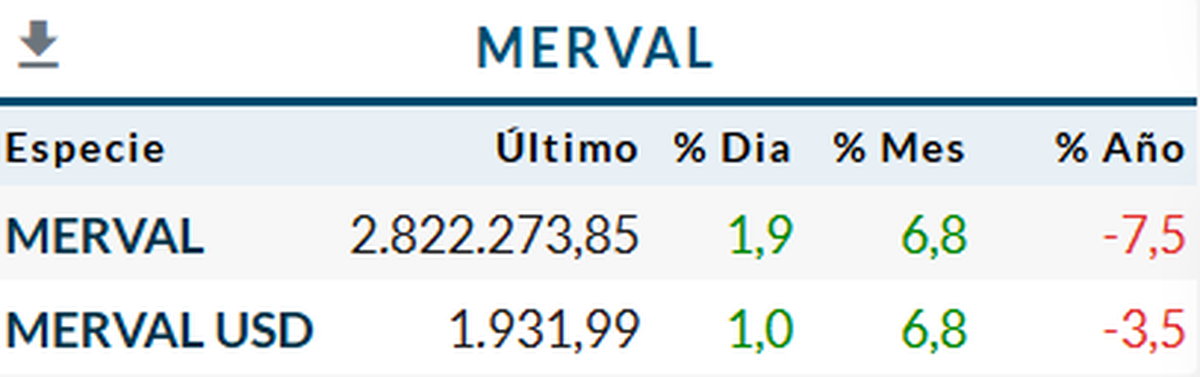 A las 13.22, la bolsa porteña ofrecía una postal bastante más firme que la de los mercados estadounidenses, ya que el índice líder se ubicaba en 2.822.273,85 puntos, con una mejora mensual de 6,8%, aunque todavía acumulaba una caída de 7,5% en lo que va del año, mientras que, medido al dólar, el Merval alcanzaba los 1.931,99 puntos, también con un avance de 6,8% en el mes, pero todavía con un retroceso anual de 3,5%, un dato que deja en evidencia que el rebote reciente todavía no alcanza para borrar el deterioro previo.