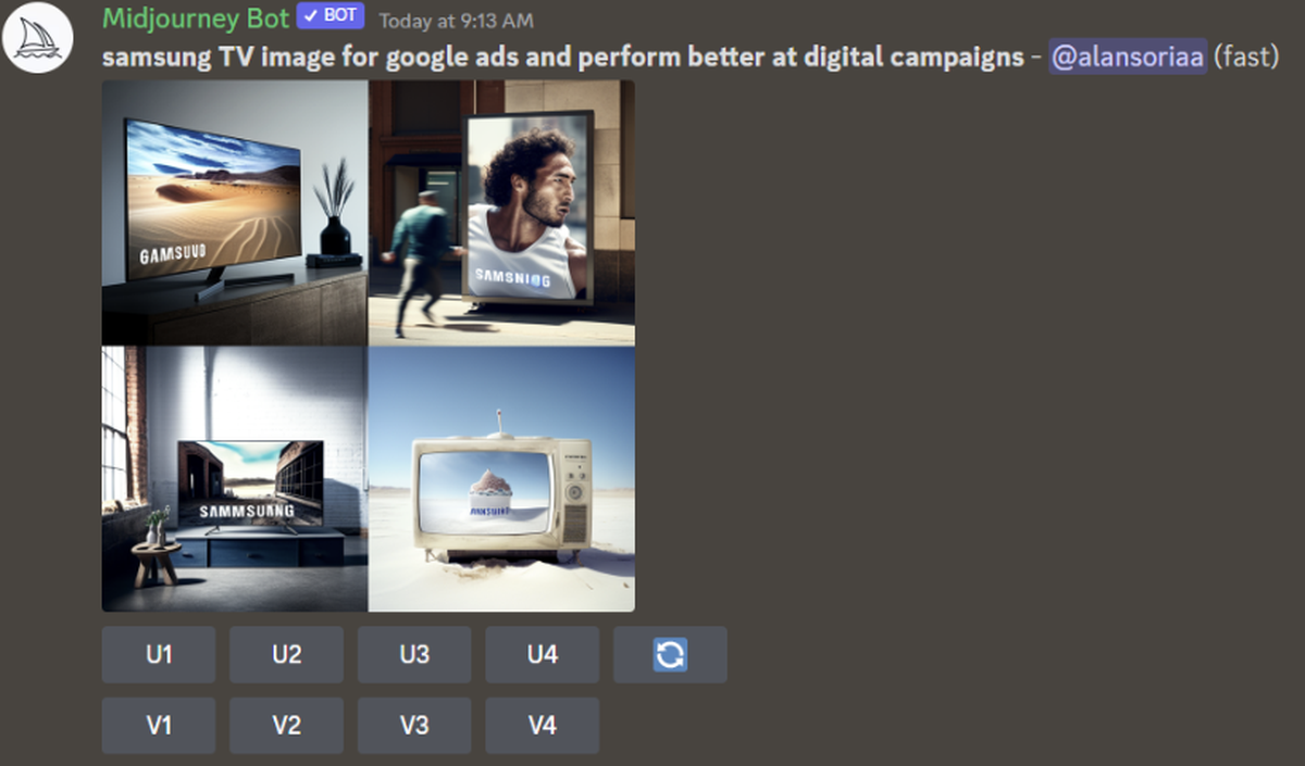 Imaginate pedirle a Midjourney que te diseñe el mejor AD posible para una TV Samsung QLED 4K.