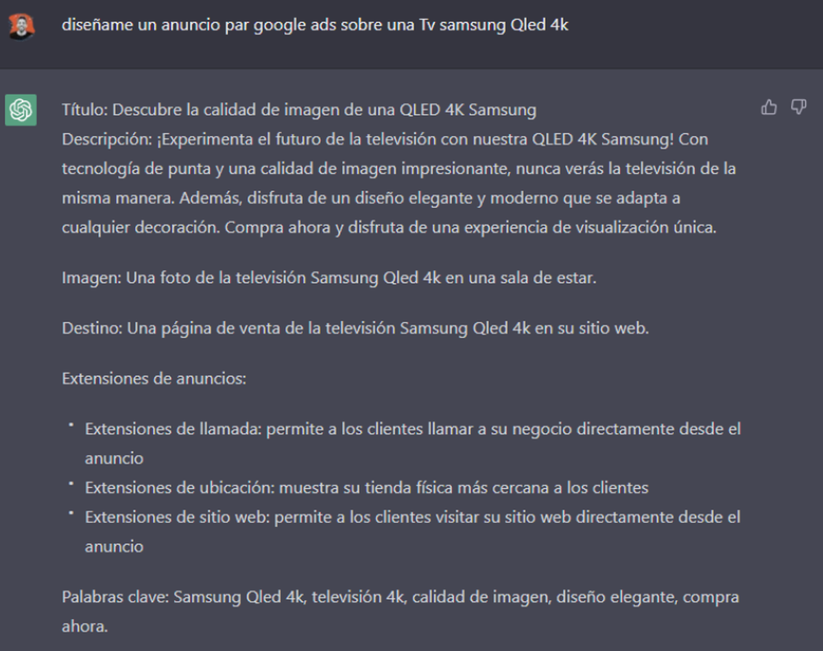 Ahora entras a Chat GPT y le pedís que te arme los COPY’s: