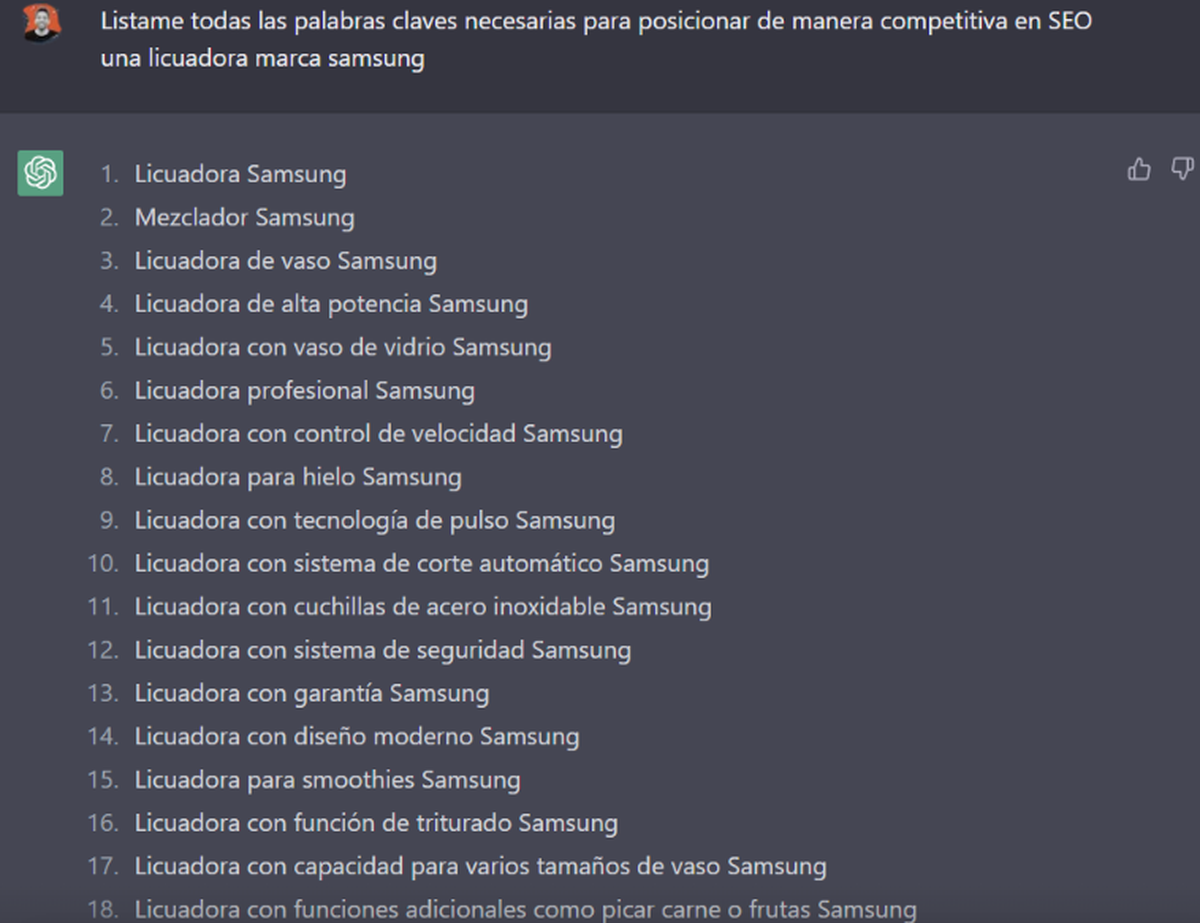Podés listar las palabras clave necesarias para cada producto y así lograr indexar mejor tu catálogo para SEO. No tenes ni que pensar, solo abrir chat gpt y preguntarle: