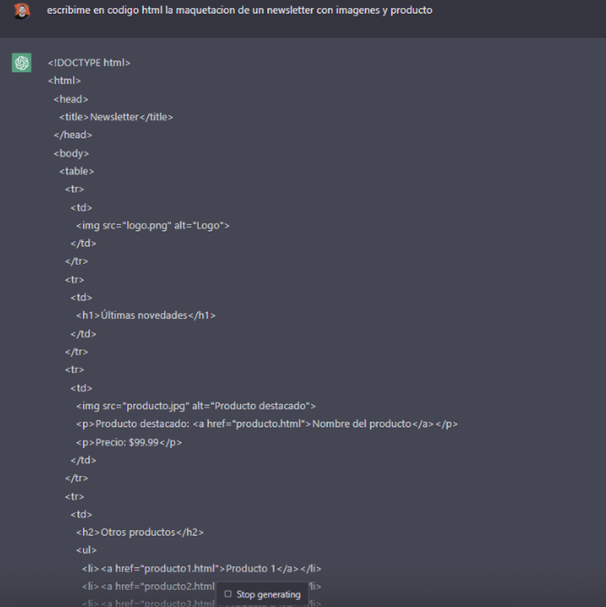 ¿Problemas con maquetar en html un news? No pasa nada, pedile a Chat GPT que te arme la estructura y mirá:
