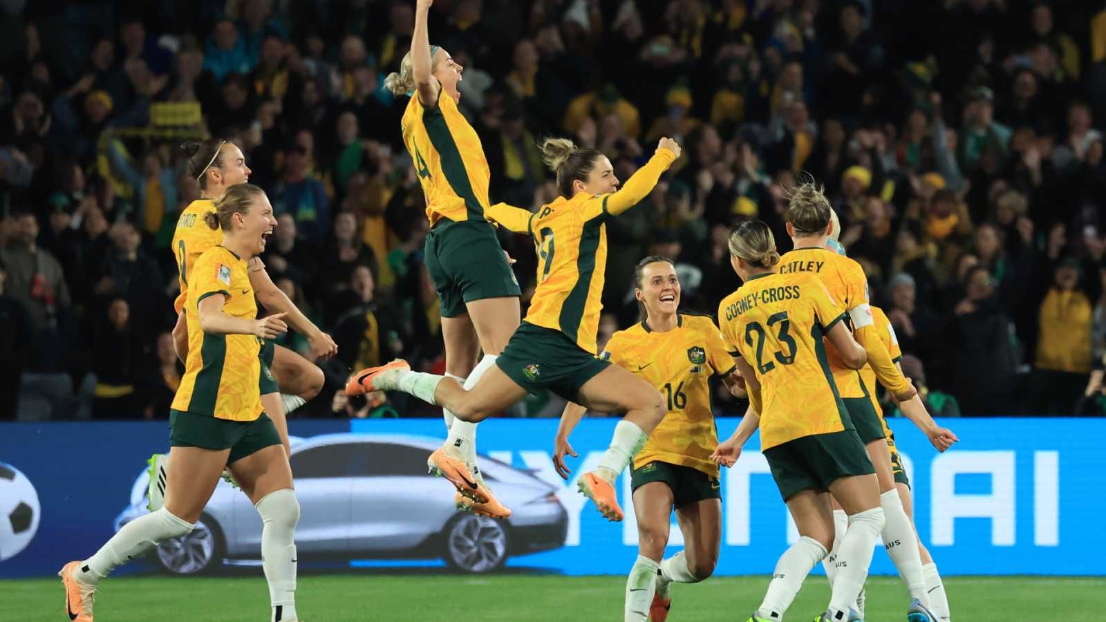 Todo cambió a los 50 minutos de juego. Marissa Sheva empujó a Hayley Raso en el área irlandesa y Edina Alves – árbitra principal – cobró penal para Australia inmediatamente. Steph Catley cambió la infracción por gol con una excelente ejecución. La defensora definió arriba y bien pegada al palo derecho de Brosnan, que igualmente se había tirado al lado contrario. Todas las jugadoras de campo corrieron atrás de la goleadora para el grito de Las Matildas, que festejaron eufóricamente con el público local.