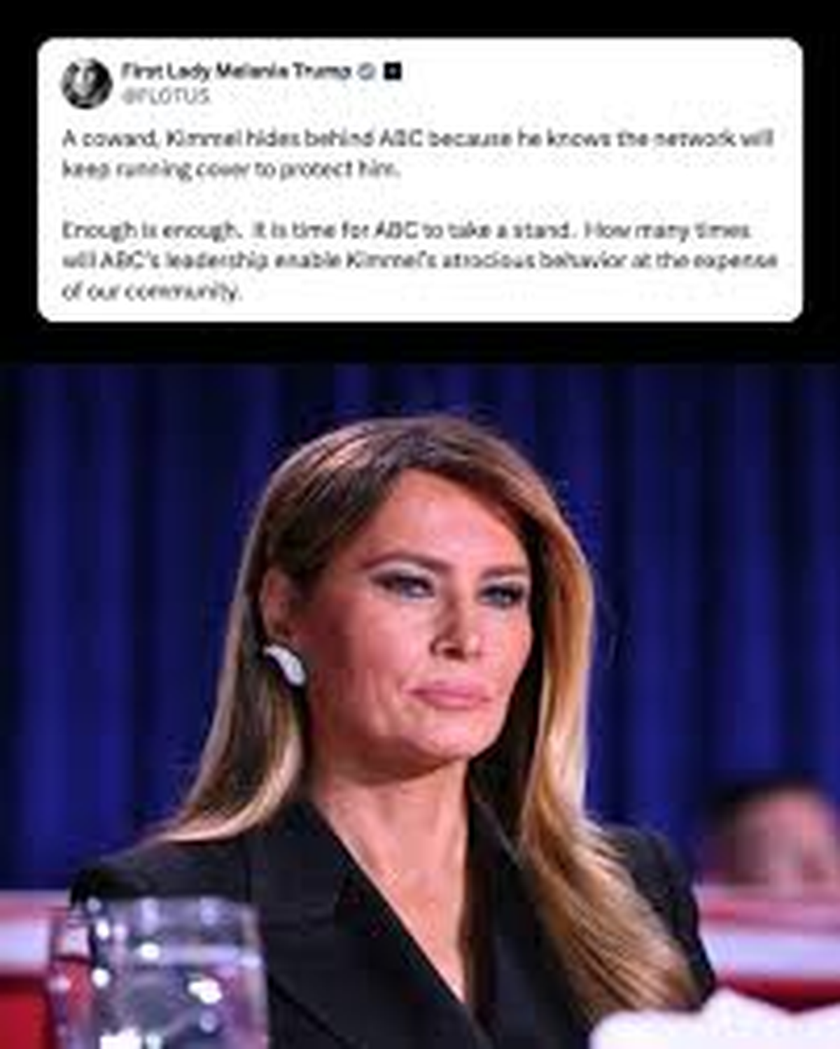 En la publicación de la primera dama contra Kimmel, dijo que el contenido del programa "no es comedia" e increpó directamente al humorista por contribuir a "profundizar en la división política en Estados Unidos".