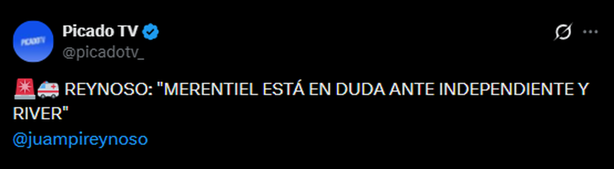 En esta línea, el periodista Juan Pablo Reynoso, de Picado TV, aseguró: “En el partido contra Universidad Católica, Miguel Merentiel fue reemplazado y está en duda para jugar el clásico del fin de semana ante Independiente por una molestia en la zona del pubis. Van a ver cómo evoluciona. Esto automáticamente nos hace pensar en el Superclásico”.