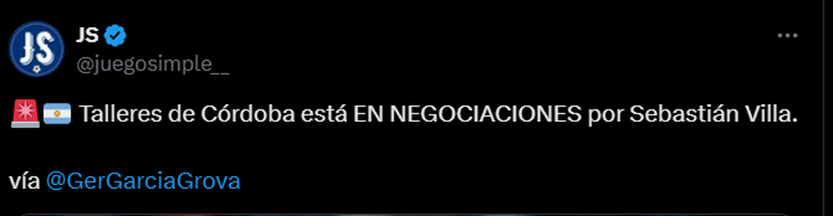 Tanto César Luis Merlo como Germán García Grova son dos periodistas que están especializados en mercados de pases e intereses puntuales de los clubes. Ambos afirman que Talleres de Córdoba está buscando a Sebastián Villa, hoy en Independiente Rivadavia de Mendoza.