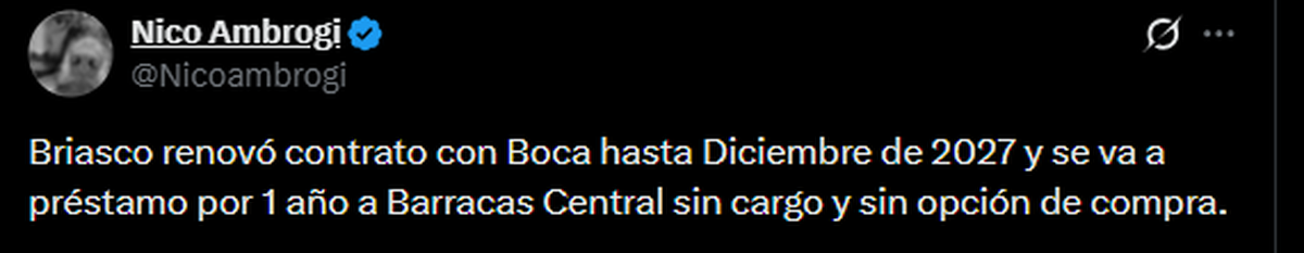 En este mercado de pases le tocaba volver al club de la Ribera y en las últimas horas se dio a conocer que renovó contrato hasta Diciembre de 2027 y se va a préstamo por 1 año a Barracas Central sin cargo y sin opción de compra.