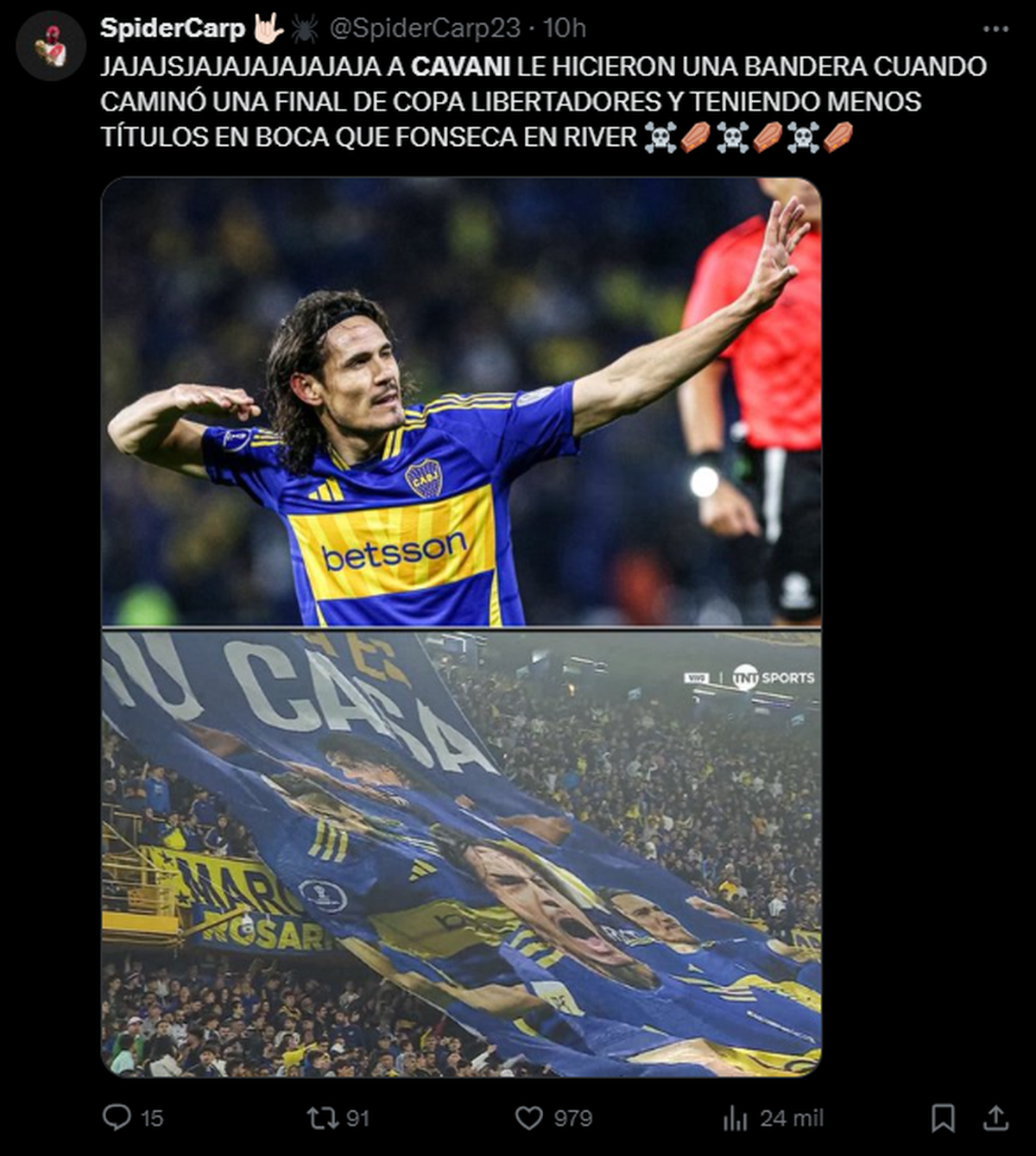 Automáticamente, llegaron las quejas de algunos simpatizantes del Xeneize y las cargas de algunos hinchas de River, haciendo alusión a que el uruguayo no ganó nada en el club de la Ribera e igualmente tiene una bandera, lo cual es cierto.
