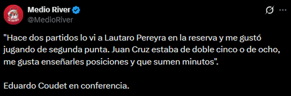 “Hace dos partidos lo vi a Lautaro Pereyra en la Reserva y me gustó jugando de segunda punta”, explicó el entrenador en conferencia de prensa.