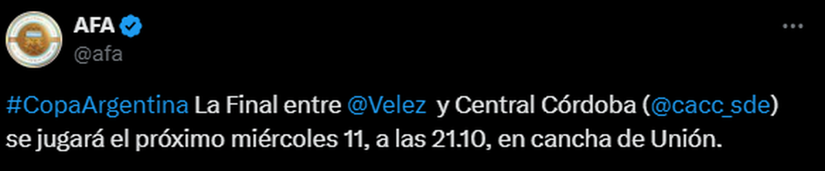 Copa Argentina y su mensaje de confirmación de fecha y sede