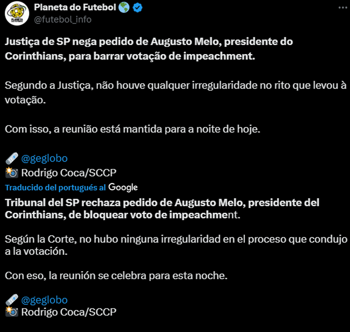En Corinthians, el Consejo Deliberante del club vota un impeachment por destituir al presidente Augusto Melo. Los detalles