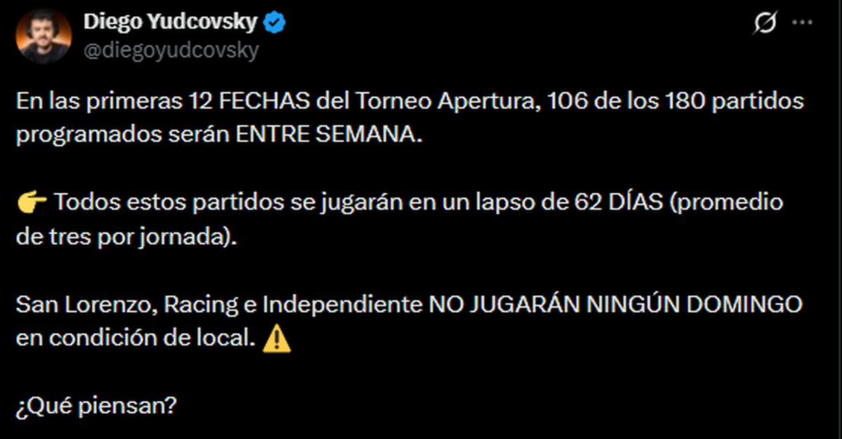 - En las primeras 12 fechas del Torneo Apertura, 106 de los 180 partidos se disputarán entre semana y no durante los fines de semana.