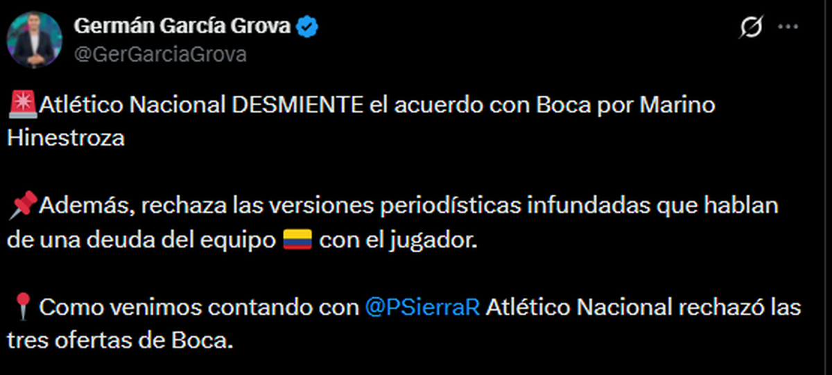 En un principio, todo indicaba que Marino Hinestroza sería el primer refuerzo del club de la Ribera —y no se descarta que finalmente lo sea—, pero desde Atlético Nacional desmintieron la existencia de un acuerdo por el extremo colombiano.