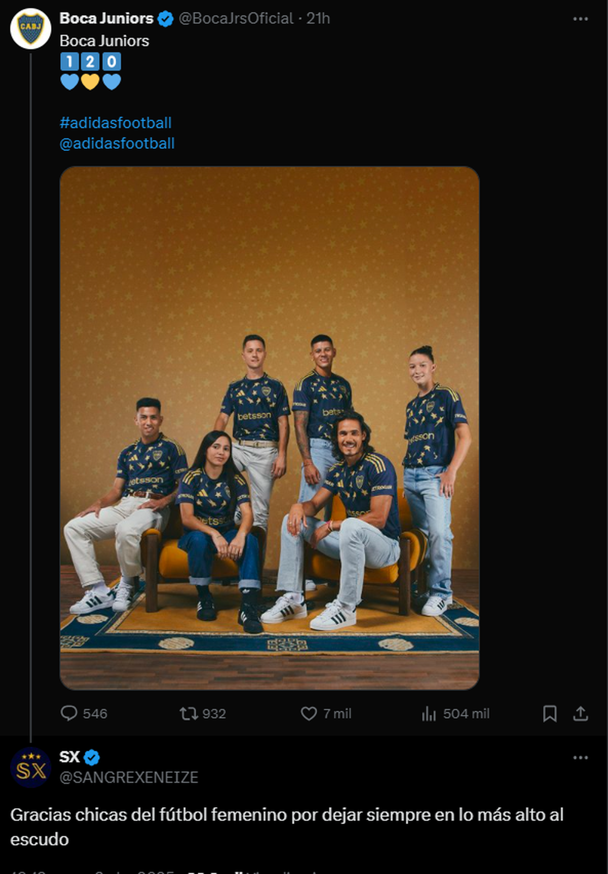 En la página oficial, presentaron la camiseta y no gustó en demasía. Por un lado, lo estético fue duramente criticado y por otro, hubo bronca hacia el plantel de fútbol masculino: "Gracias chicas del fútbol femenino por dejar siempre en lo más alto al escudo", expresó Sangre Xeneize, reconocida cuenta que habla del club en X (y varios comentarios fueron en esa línea).