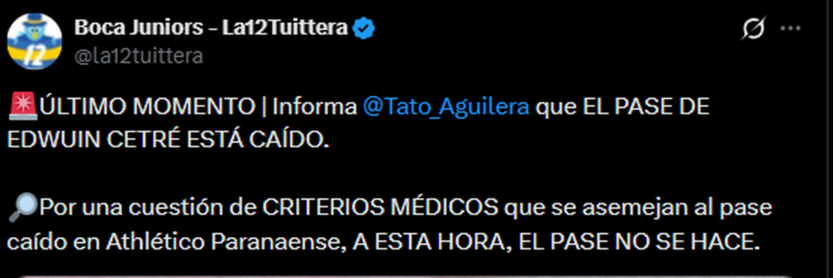 Diego Monroig, periodista partidario de Boca en ESPN, fue más cauto en ese sentido: “Lo de Edwuin Cetré no está caído, está frenado”, comenzó diciendo.