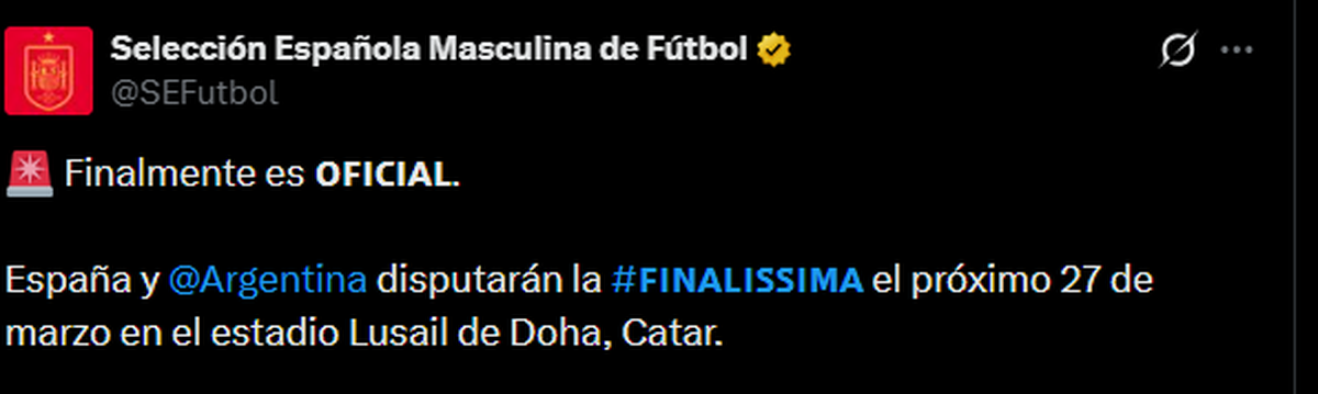 Si bien ya parecía estar definido, este jueves 18 de diciembre de 2025 se confirmó de manera oficial la fecha y la sede de la Finalissima entre Argentina y España.