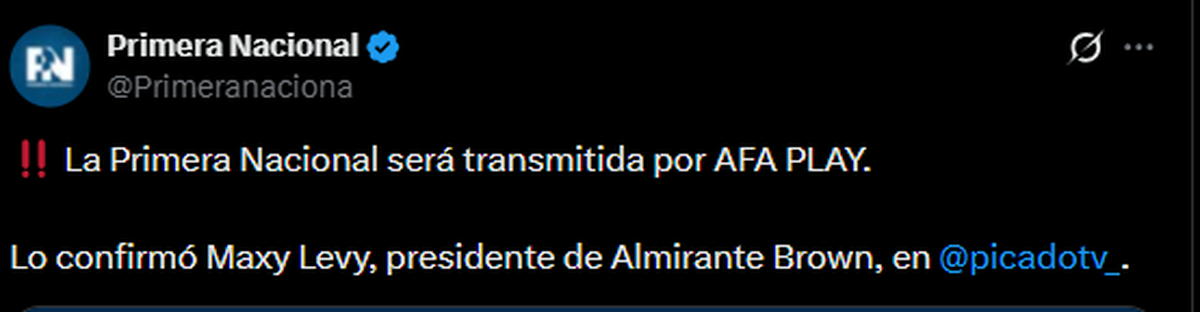 “La Primera Nacional va a ir por AFA Play”, expresó en su momento Maximiliano Levy, dirigente de AFA y cercano a Tapia, cuando la decisión aún se encontraba bajo análisis.