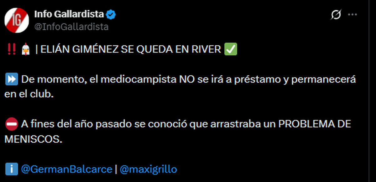 Cabe recordar que, a fines de 2025, se dio a conocer que el futbolista arrastraba problemas en los meniscos.
