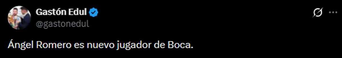 Ayer, 21 de enero, Edul volvió a ser tendencia tras publicar en X: “Ángel Romero es nuevo jugador de Boca”. El tuit superó los mil comentarios y acumuló más de 250 citas, muchas de ellas con burlas relacionadas a lo ocurrido con Hinestroza y Atlético Nacional.