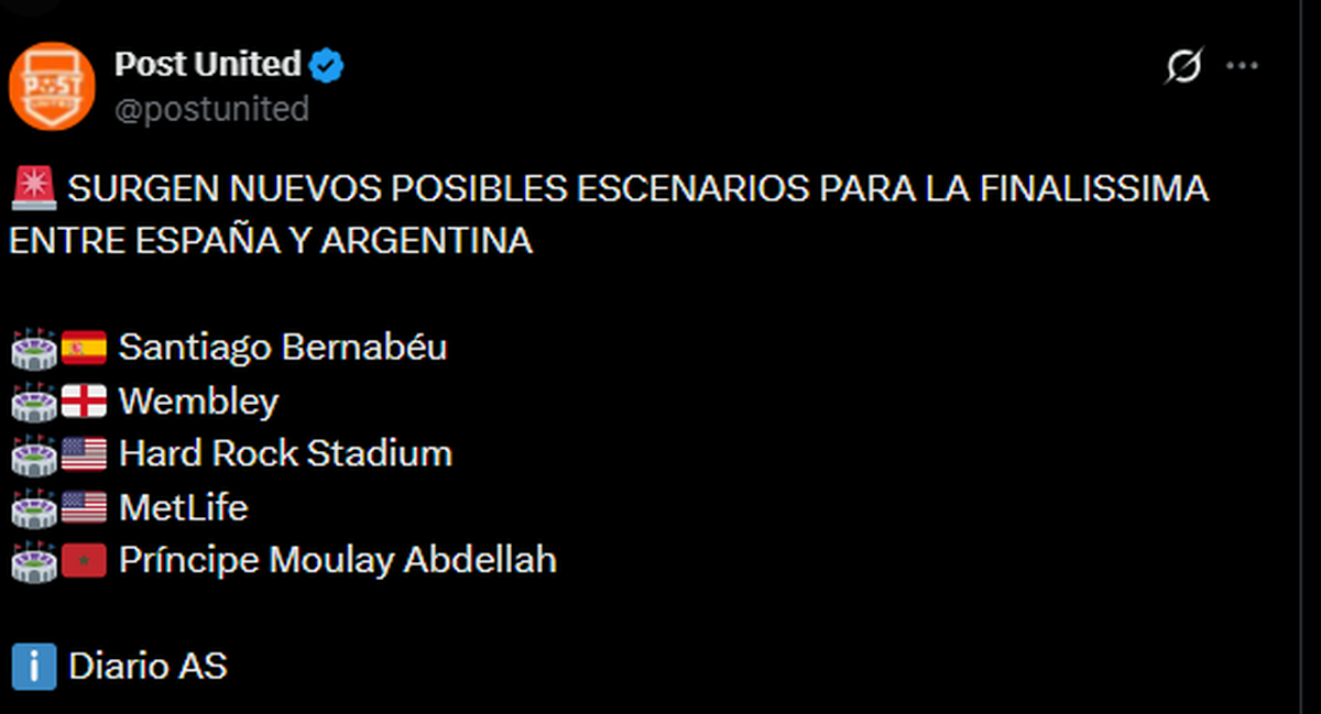 Según el Diario AS, los posibles escenarios que se analizan son el estadio Santiago Bernabéu (España), Wembley (Inglaterra), el Hard Rock Stadium (Estados Unidos), el MetLife Stadium (Estados Unidos) y el estadio Príncipe Moulay Abdellah (Marruecos).