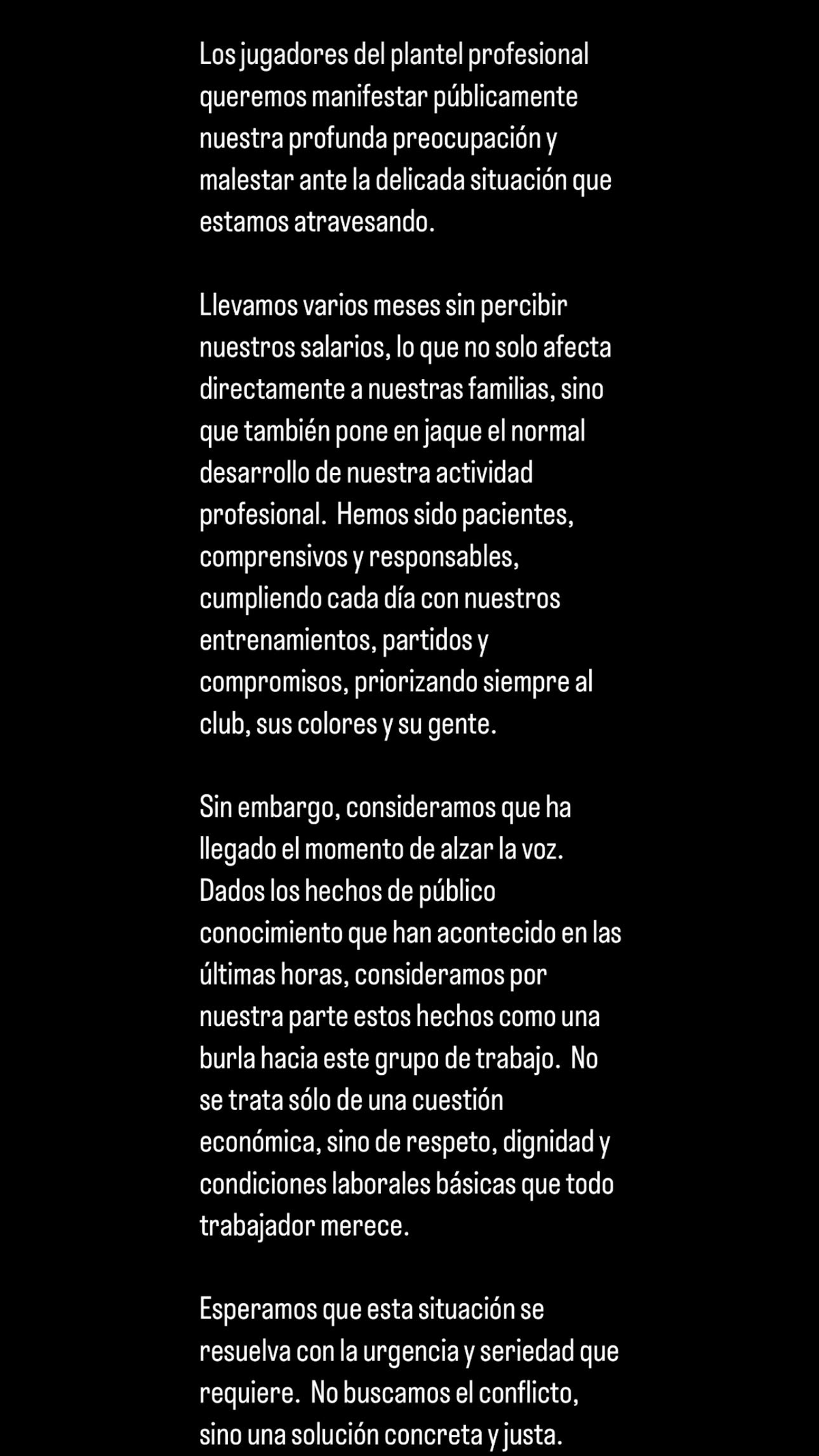 “Consideramos que ha llegado el momento de alzar la voz.", publicó Iker en su Instagram (al igual que sus compañeros), cuando decidieron no entrenarse por falta de pagos.