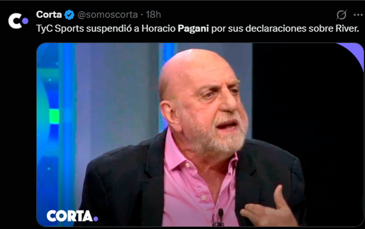 “TyC Sports suspendió a Horacio Pagani por sus declaraciones sobre River”, aseguraron desde el medio en su cuenta de X, una noticia que sorprendió a todos y generó un nuevo revuelo.