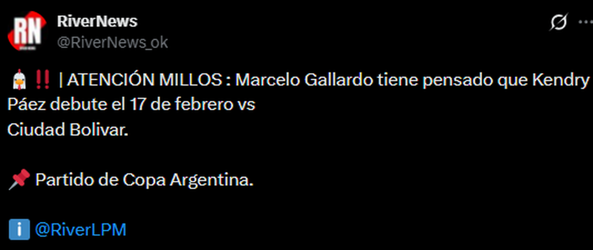 Por su parte, tal como fue mencionado, Kendry Páez contará con algunos días más de adaptación antes de ponerse de manera oficial la camiseta del club de Núñez.