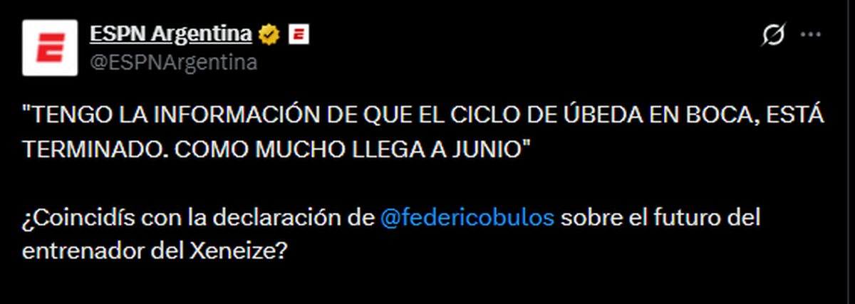 Muchos en Boca Juniors hablaron sobre lo que comentó Federico Bulos en ESPN sobre el entrenador Claudio Úbeda.
