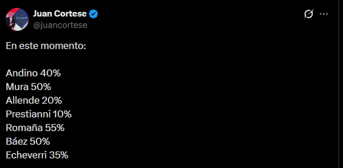 Juan Cortese reveló una noticia que festeja Racing de Gustavo Costas