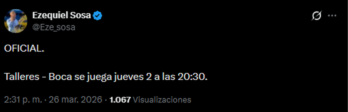 Boca pretendía disputar el encuentro el jueves 2 de abril, teniendo en cuenta que su debut en la Copa Libertadores será el martes 7, mientras que Talleres buscaba que se jugara el sábado 4.