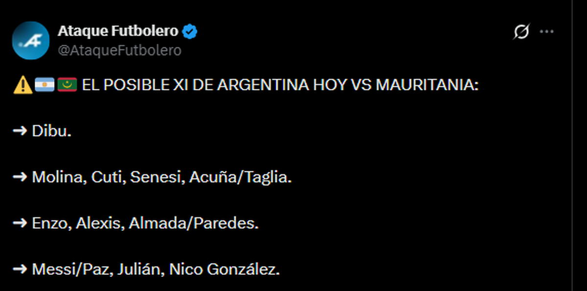 La Selección Argentina de Lionel Scaloni se enfrenta a Mauritania en uno de los partidos amistosos que funcionarán como prueba de cara al Mundial 2026. Algunos se animan a poner en duda la presencia del capitán Lionel Messi como titular.